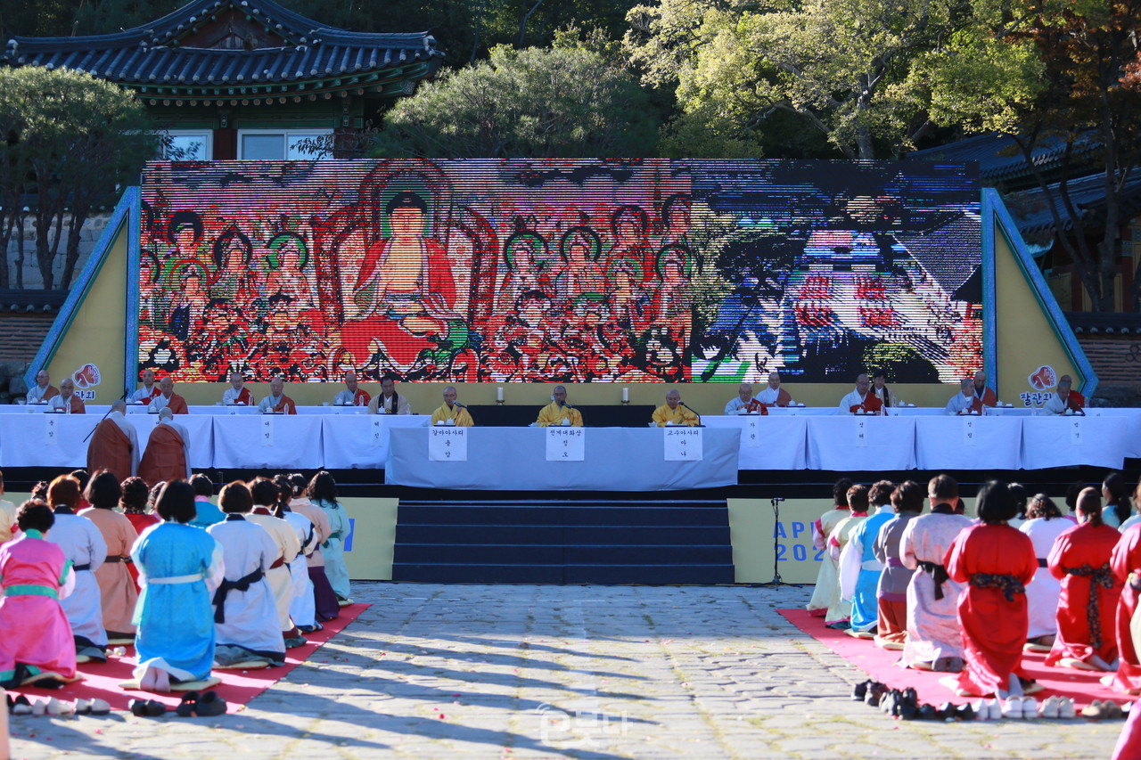 신라 시대부터 내려와 고려 시대 꽃 피운 전통 호국 불교 의식 팔관회가 범어사에서 성대하게 펼쳐졌다.